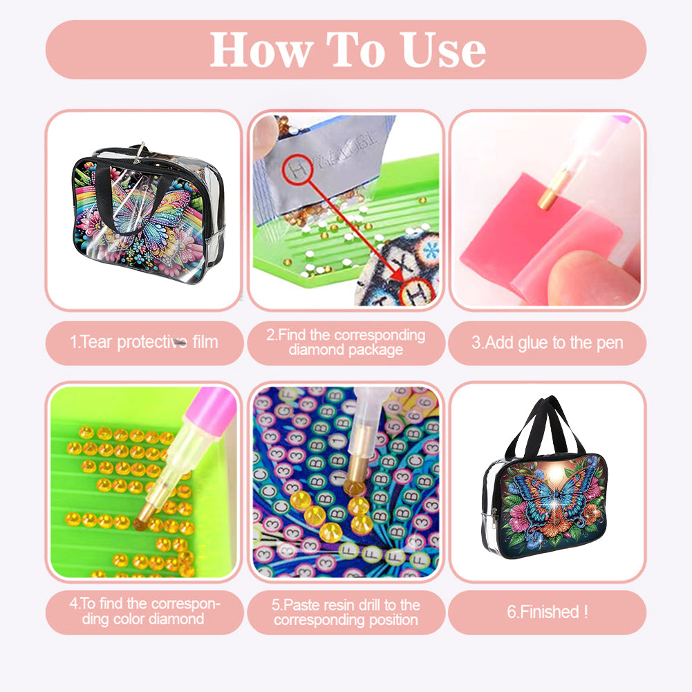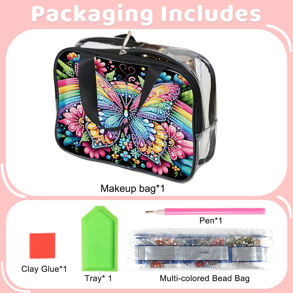 DIY Butterfly Diamond Art Rhinestone Makeup Bag Transparent PVC Storage Pack