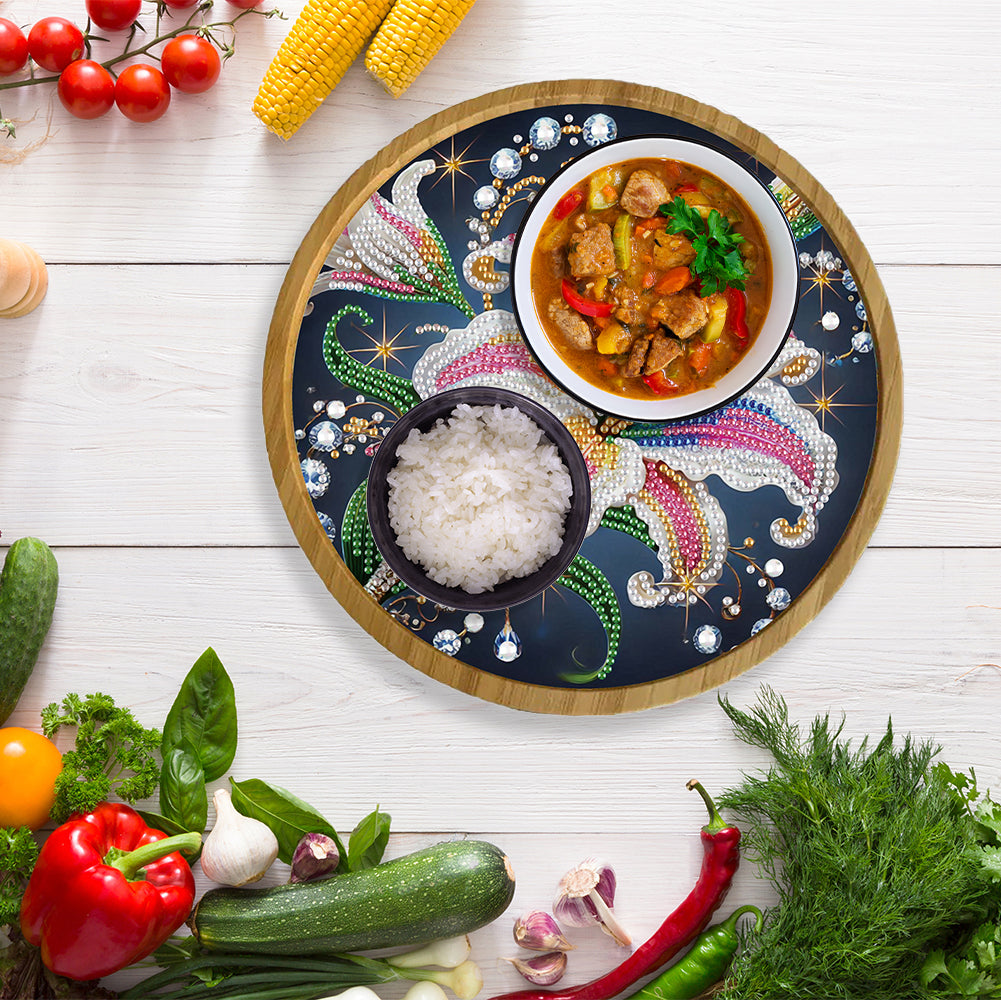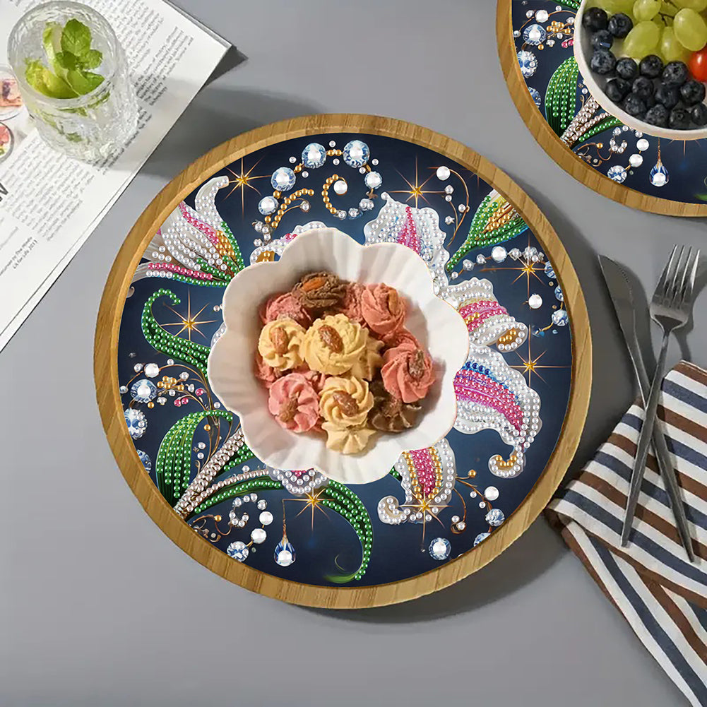 5. Stylish and Practical: Combining elegance with functionality, this DIY diamond painting kit round wooden tray not only serves a practical purpose but also adds a touch of style to any setting, enhancing the presentation of meals and snacks.