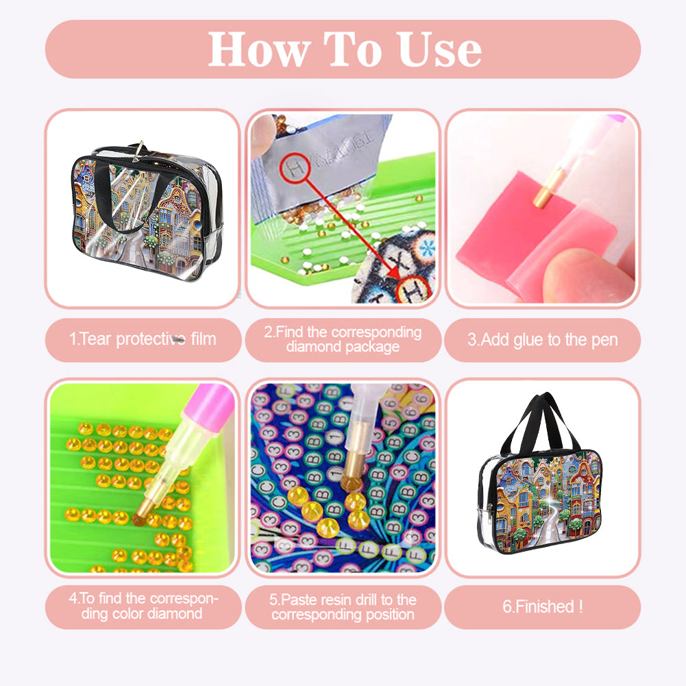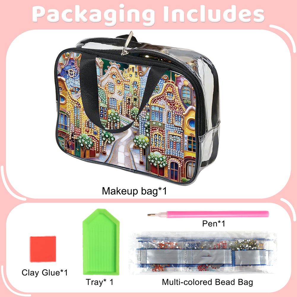 DIY House Diamond Art Rhinestone Makeup Bag Transparent PVC Storage Pack Gift