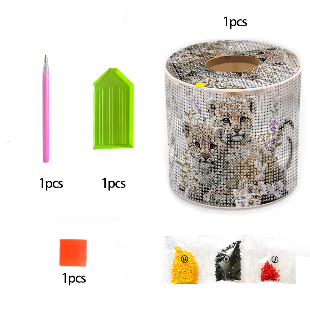 Leopard Cub DIY Diamond Painting Handmade Tissue Holder Rhinestones Tissue Box