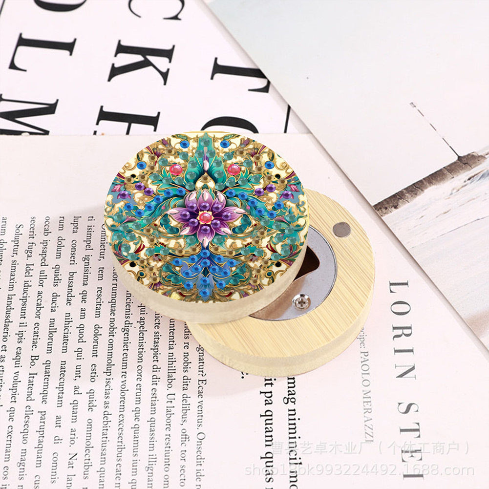 • Load image into Gallery viewer, Wooden PET DIY Diamond Painting Magnets Jar Opener Kit Kitchen Tool (Flower D)