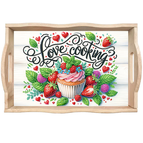 Wooden Animals Flowers 5D DIY Diamond Painting Serving Tray with Handle for Desk