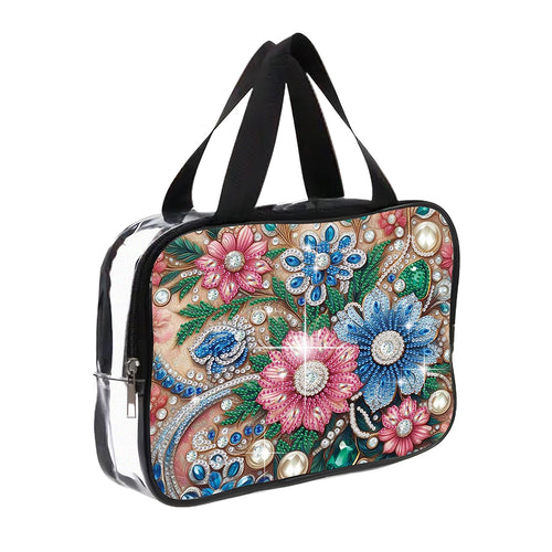 DIY Flowers Diamond Art Rhinestone Makeup Bag Transparent PVC Storage Pack Gift