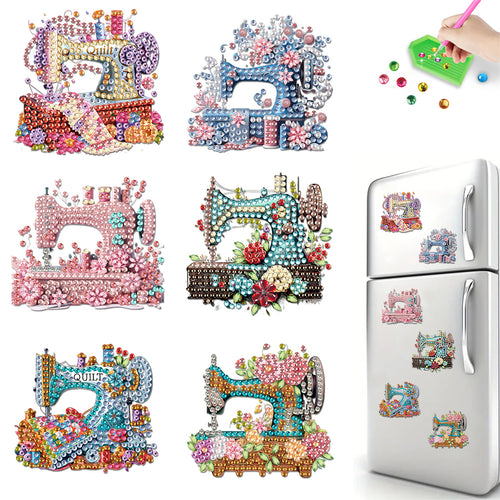 6Pcs Acrylic 2D Flat DIY Sewing Machine Diamond Painting Fridge Stickers