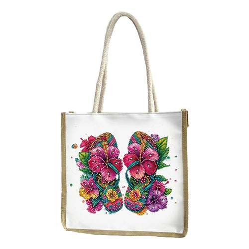 5D Diamond Painting Handbag DIY Linen Shopping Storage Bag (Flower Slippers)