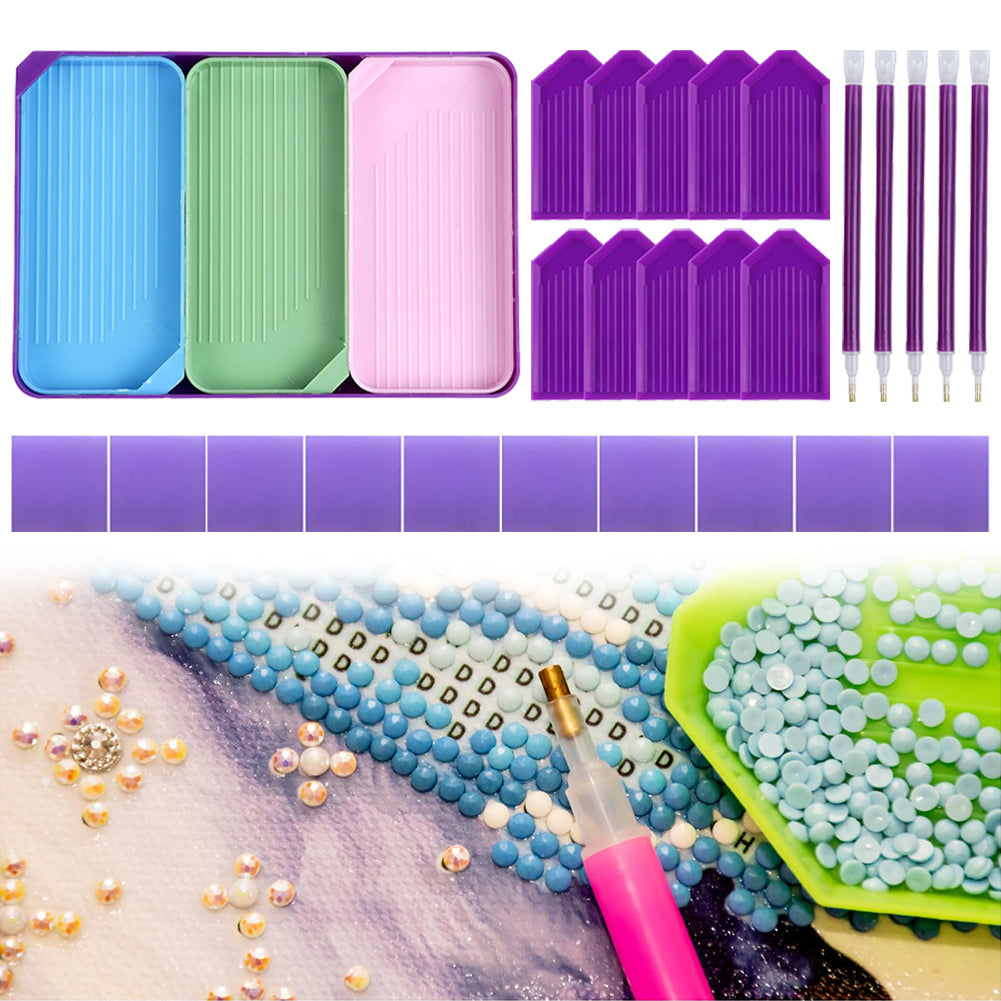 3-Point Drill Pen*5+Super Large Drill Plate*1+Large Drill Plate*3+Small Tray*9+Plastic*10