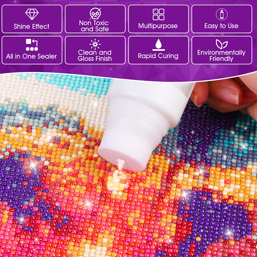 Product Function: Form a layer of transparent protective layer on the surface of the painting, can protect the stability of the drill, increase the luster, maintain the brightness of the decorative painting, waterproof and anti-ultraviolet has a very good effect.