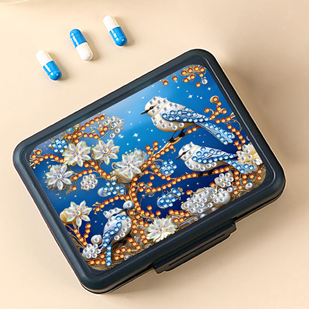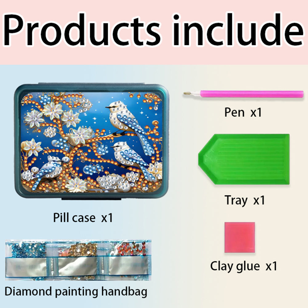 Bird Rhinestones Pill Storage Box Diamond Painting Pill Case for Art Craft