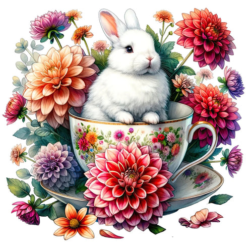 Diamond Painting - Full Round - Rabbit And Dahlia (40*40CM)