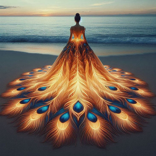 Diamond Painting - Full Round - Feather Skirt Back Girl (40*40CM)