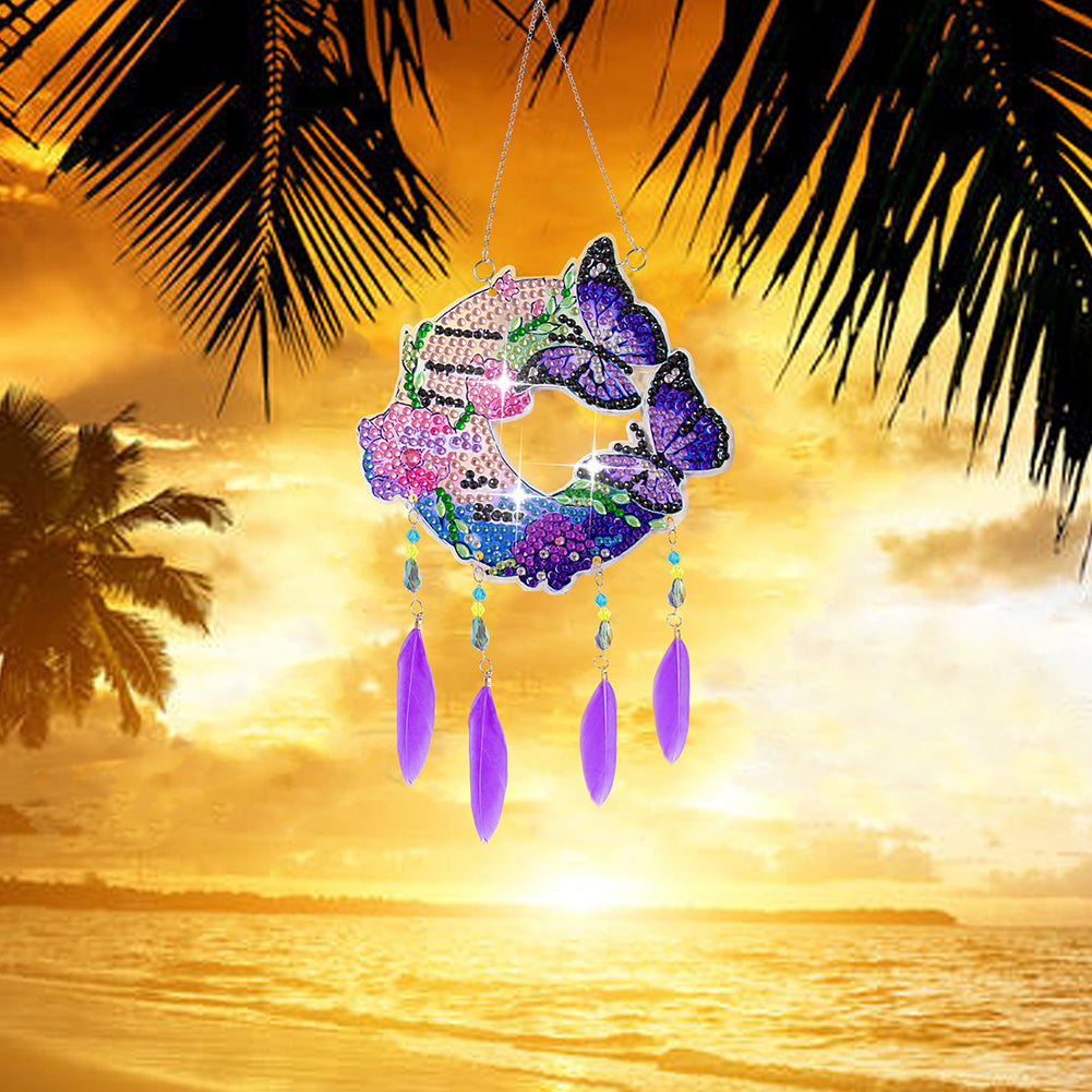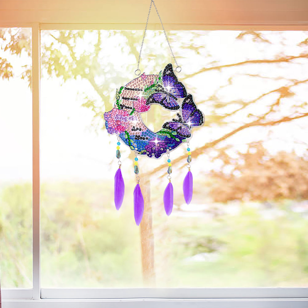 Double Sided Diamond Art Hanging Pendant Feather Wind Chime for Home Wall Decor