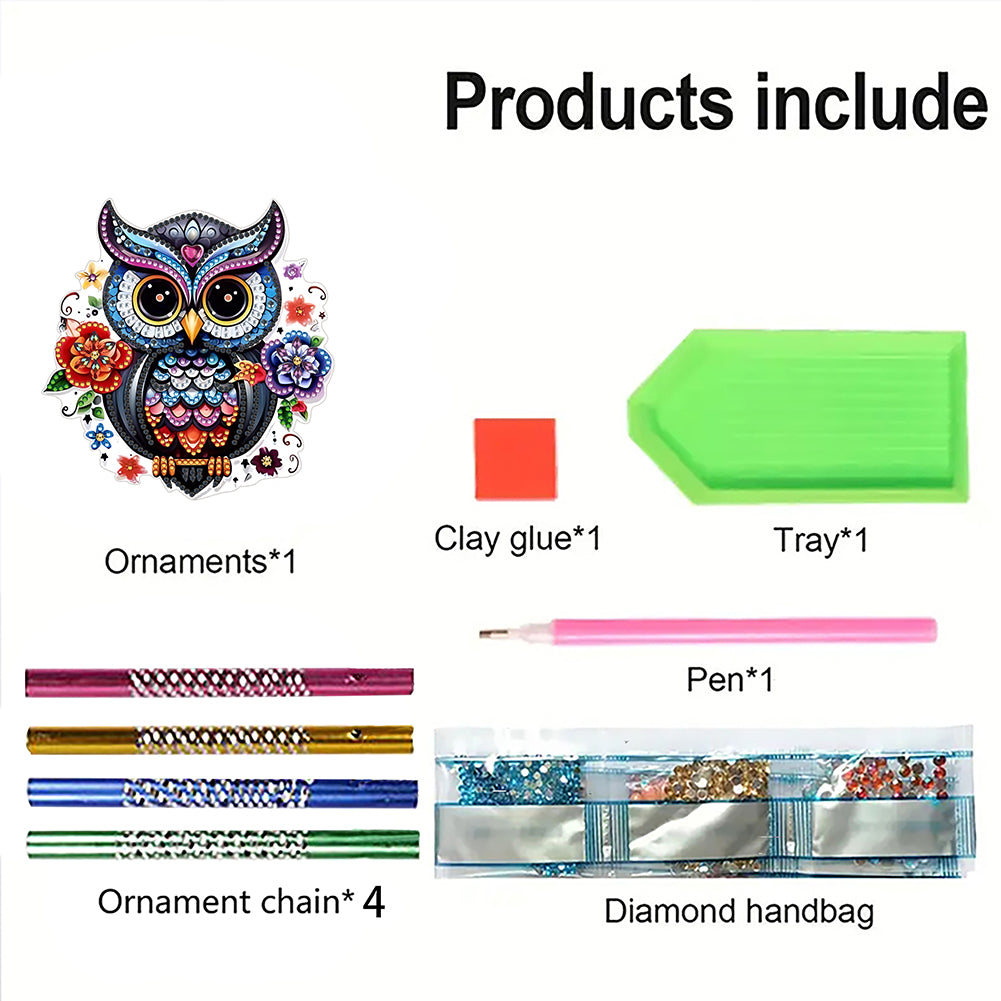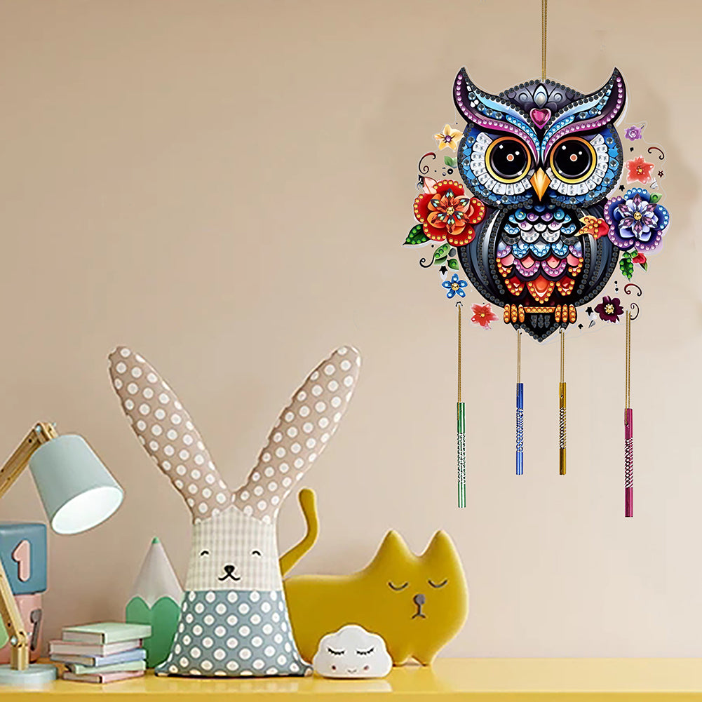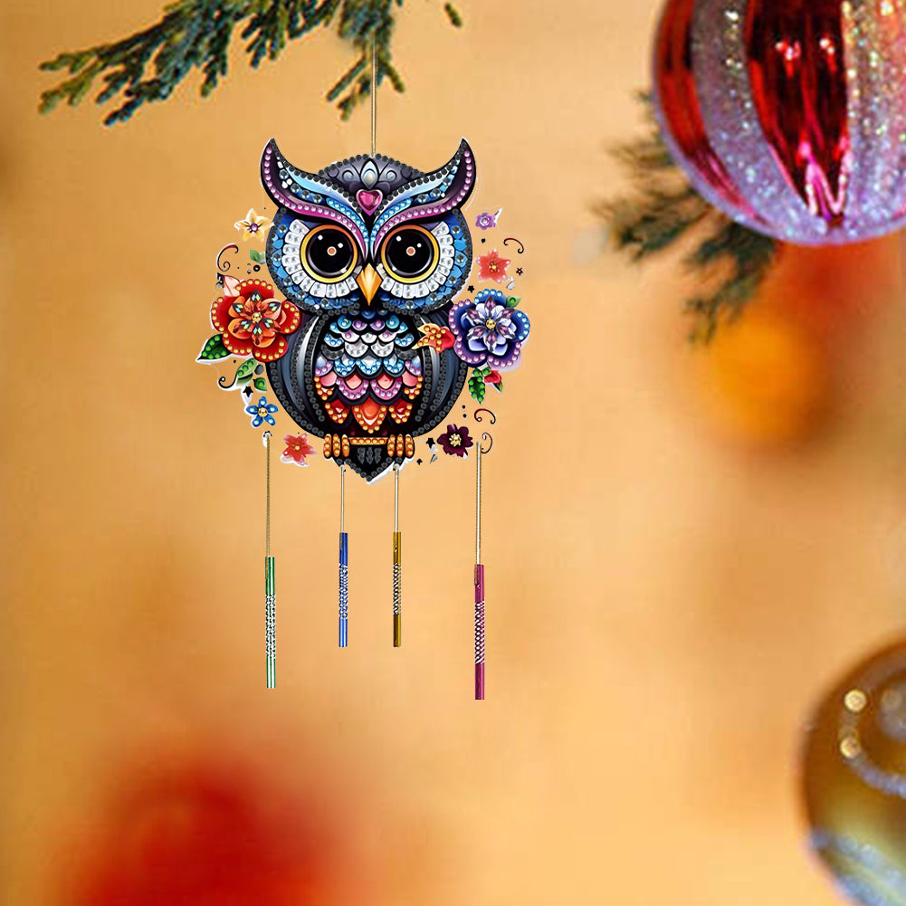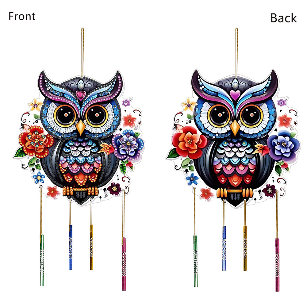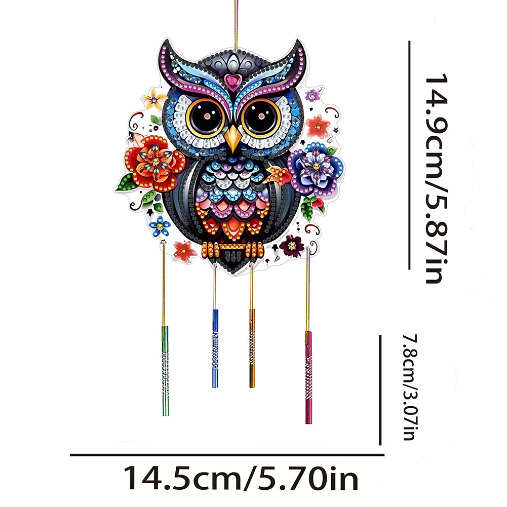 Double Sided Special Shaped Owl Diamond Art Painting Wind Bell Hanging Sign
