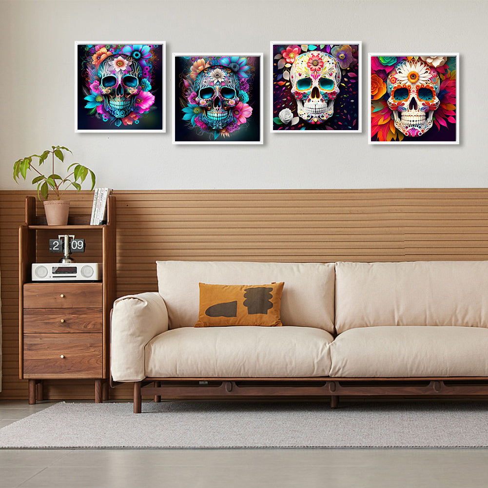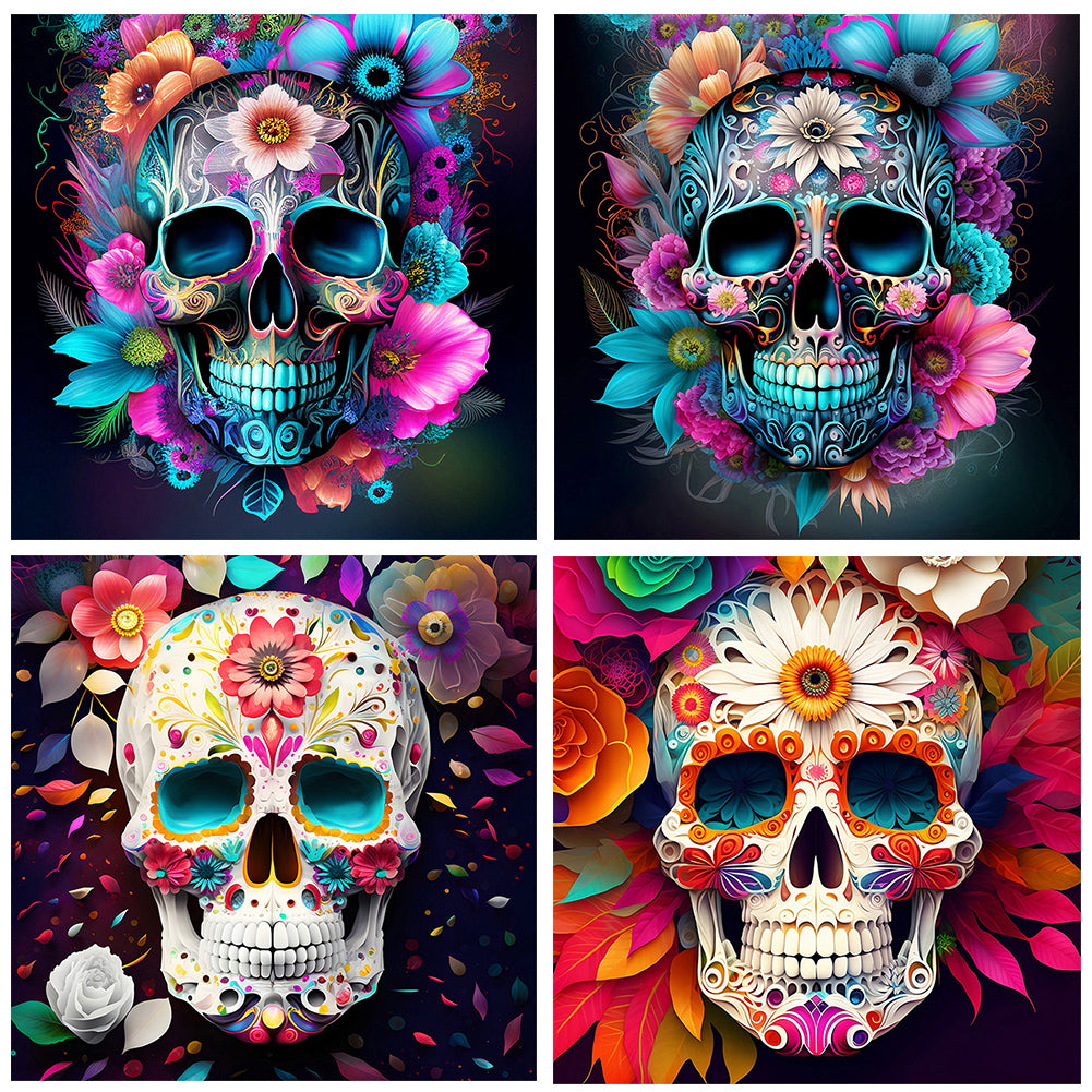 4pcs Diamond Painting Set - flower skull (30*30CM)