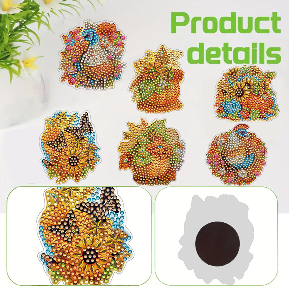 6Pcs Acrylic Special Shape Pumpkin Diamond Painting Fridge Magnet for Home Decor