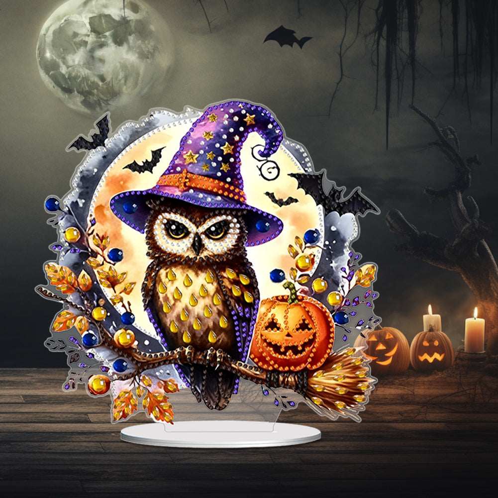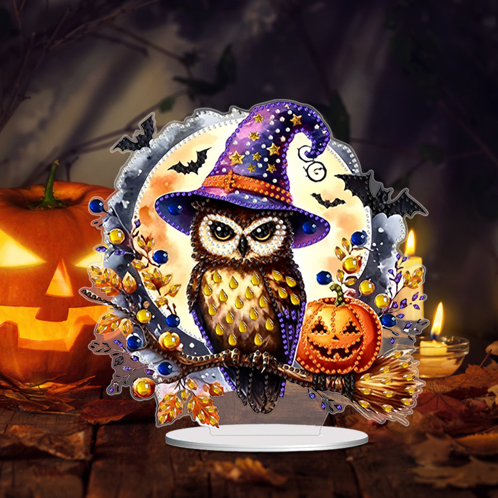 Acrylic Halloween Pumpkin Owl Diamond Painting Desktop Ornaments Kit Home Decor