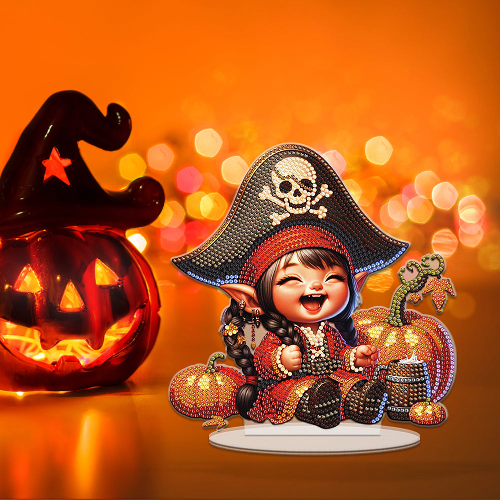 Acrylic Special Shape Halloween Pirate Girl Diamond Painting Desktop Ornaments