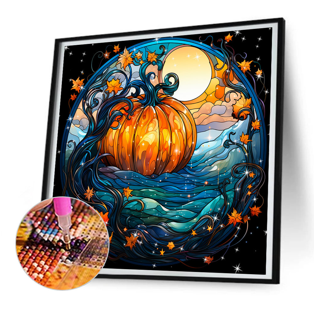 Diamond Painting - Full Round - Halloween funny pumpkin glass painting (30*30CM)