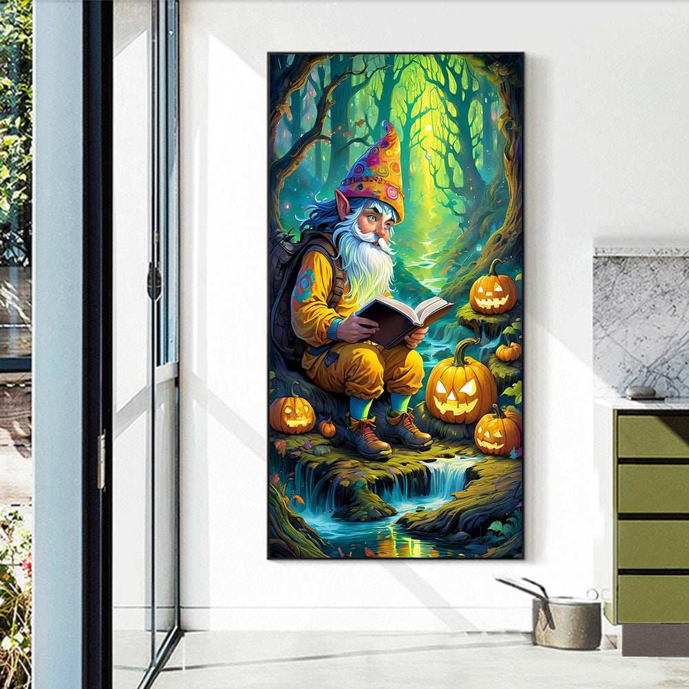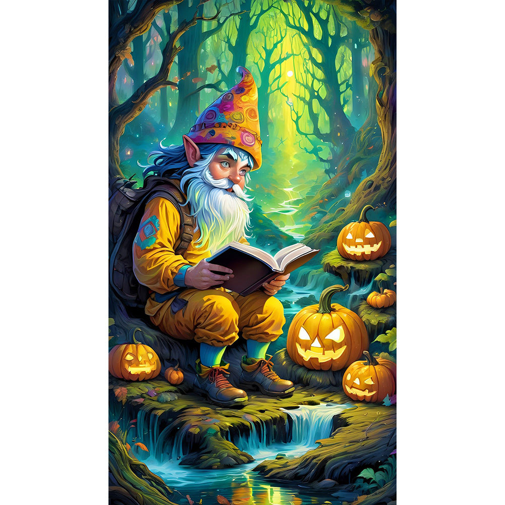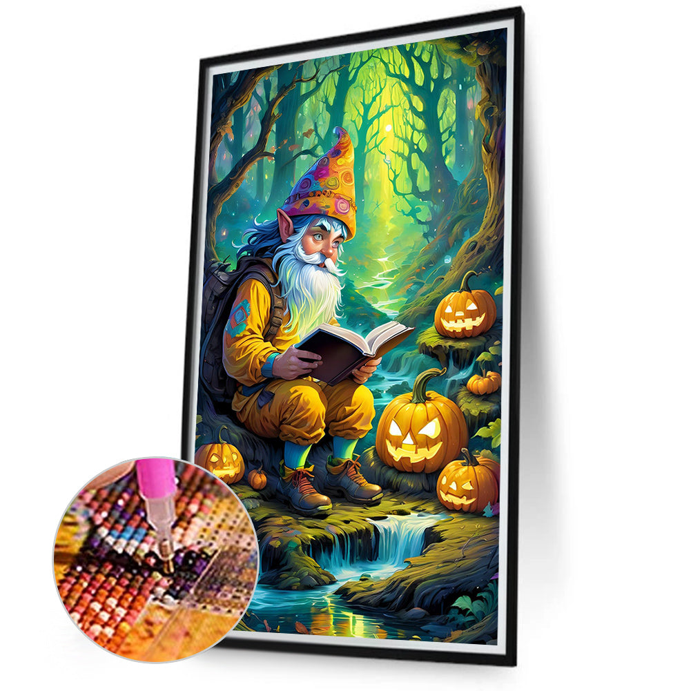 Diamond Painting - Full Round - Pumpkin lantern and grandpa in the forest (40*70CM)