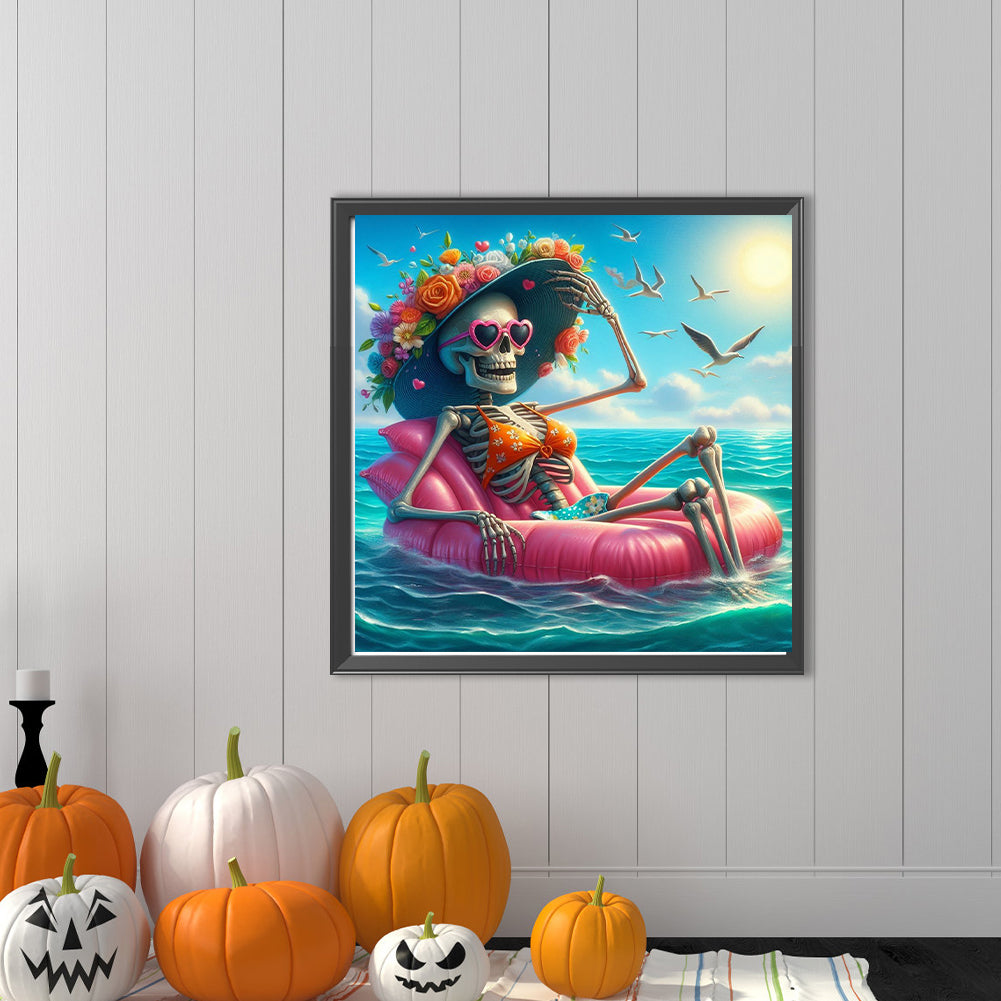 Diamond Painting - Full Round - Sunlight on the Sea Bathing Skull Girl (40*40CM)