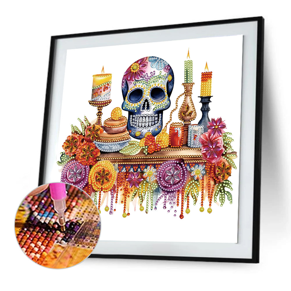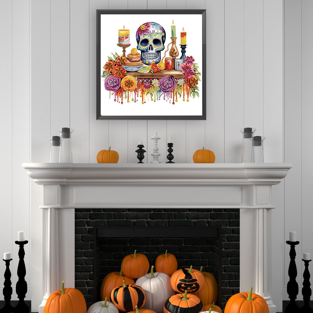 Diamond Painting - Partial Special Shaped - Halloween skeleton flowers (30*30CM)