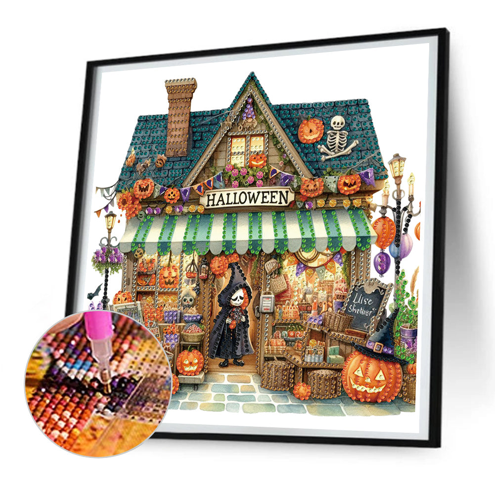 Diamond Painting - Partial Special Shaped - Halloween street hut (30*30CM)