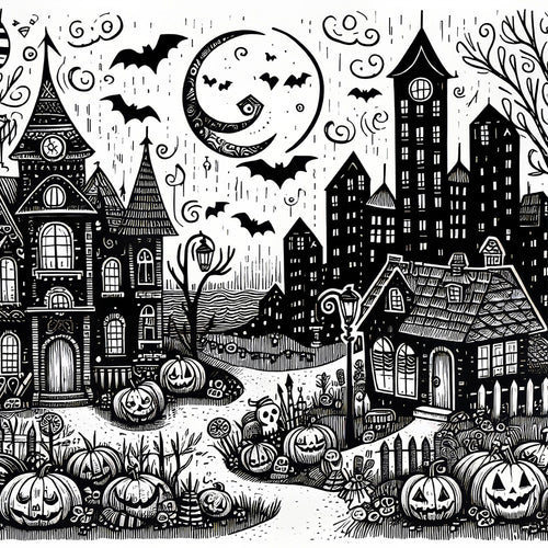 Diamond Painting - Full Round - Black and white Halloween night (40*40CM)