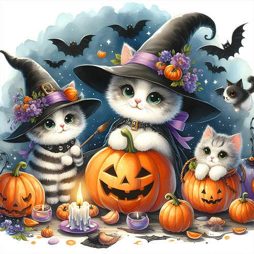 Diamond Painting - Full Round - Halloween cat and pumpkin (30*30CM)