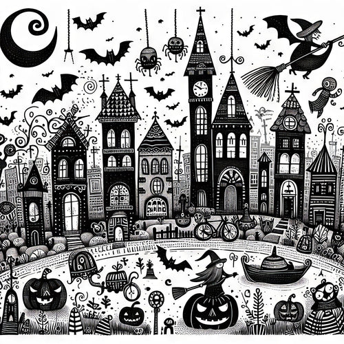 Diamond Painting - Full Round - Black and white Halloween (40*40CM)