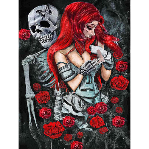 Diamond Painting - Full Round - girl rose skull (30*40CM)