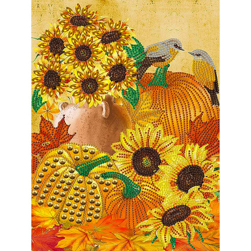 Diamond Painting - Partial Special Shaped - Autumn pumpkin sunflower (30*30CM)