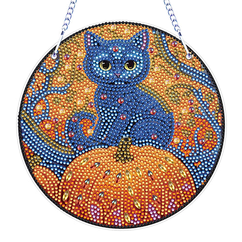 Special Shape Diamond Drawing Hanging Kit Suncatcher (Halloween Cat)