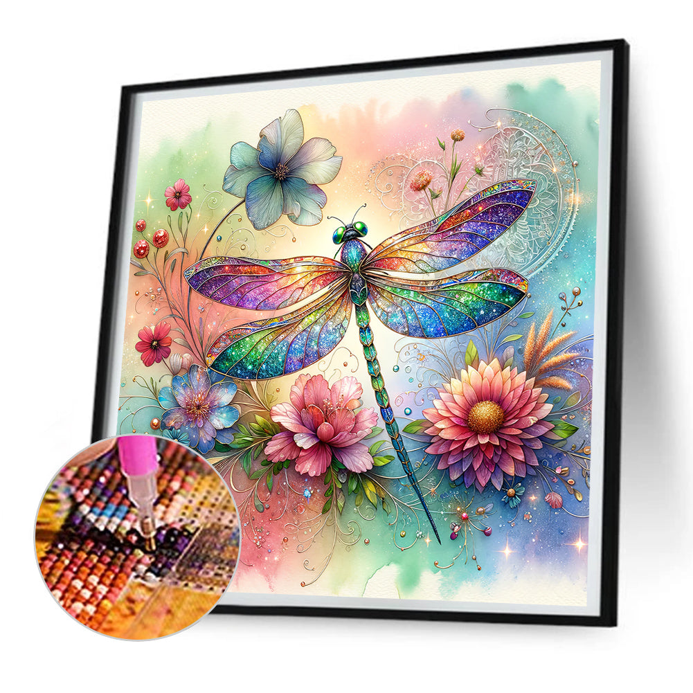 Diamond Painting - Full Round - Flowers dragonfly (30*30CM)