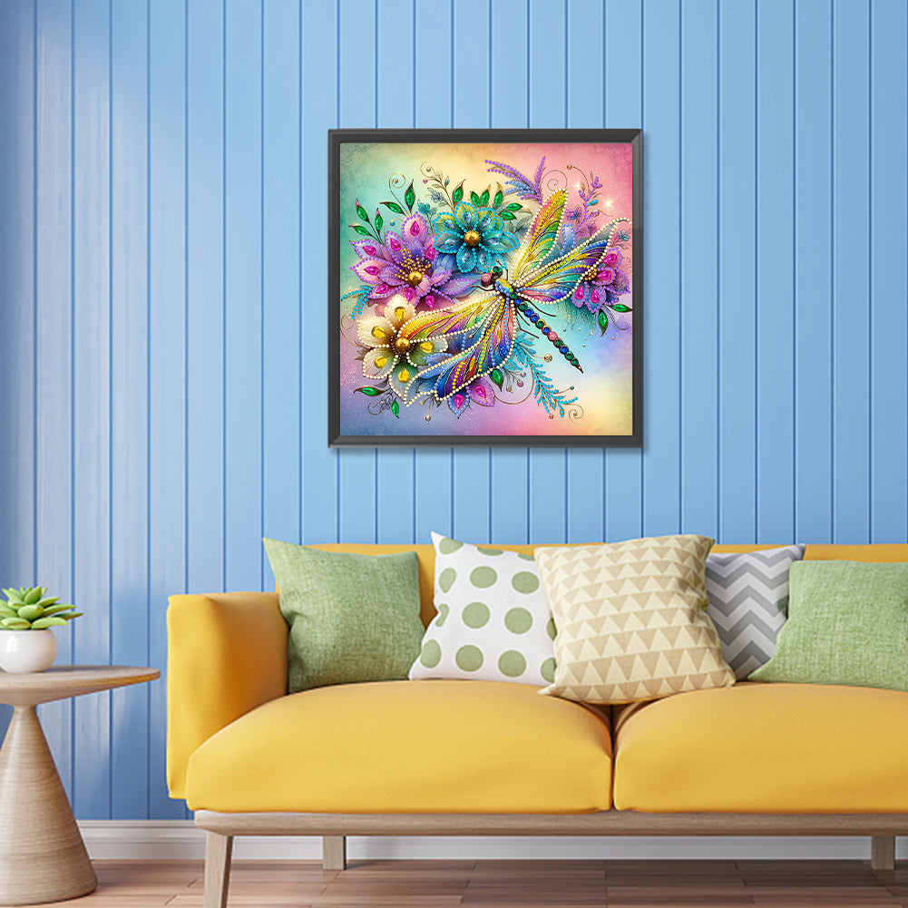 Diamond Painting - Partial Special Shaped - Flowers dragonfly (30*30CM)