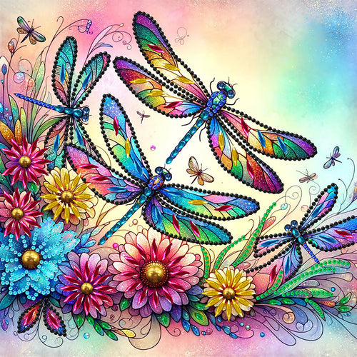 Diamond Painting - Partial Special Shaped - Flowers dragonfly (30*30CM)