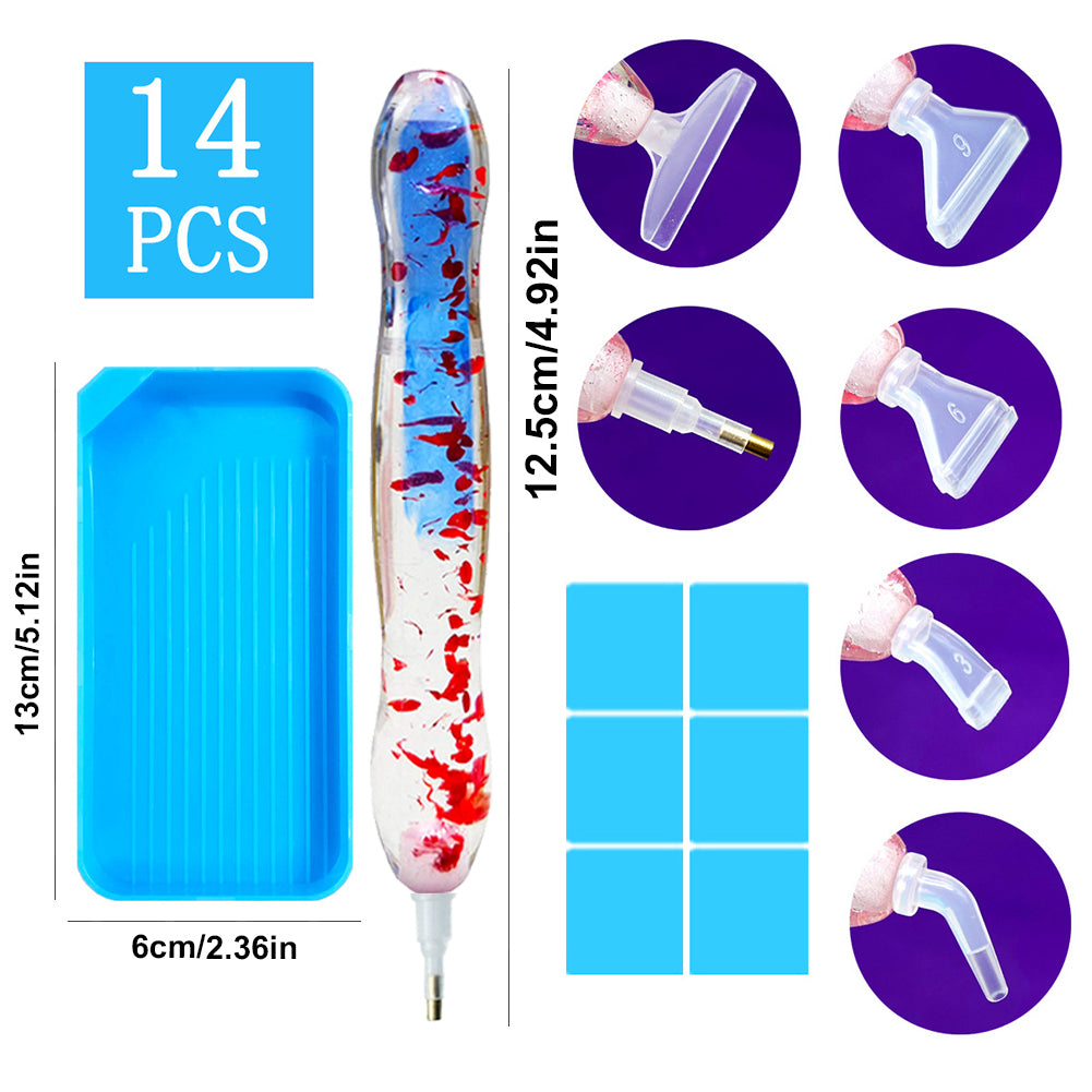 14PCS Resin Diamond Painting Pen Kit with Trays DIY Diamond Painting Tool (Blue)