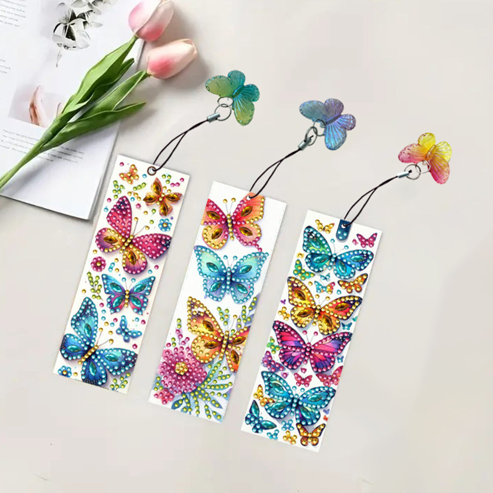 3Pcs Special Shape Butterfly Diamond Painting Bookmark with Pendant
