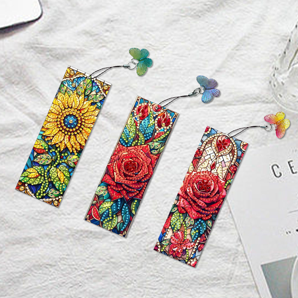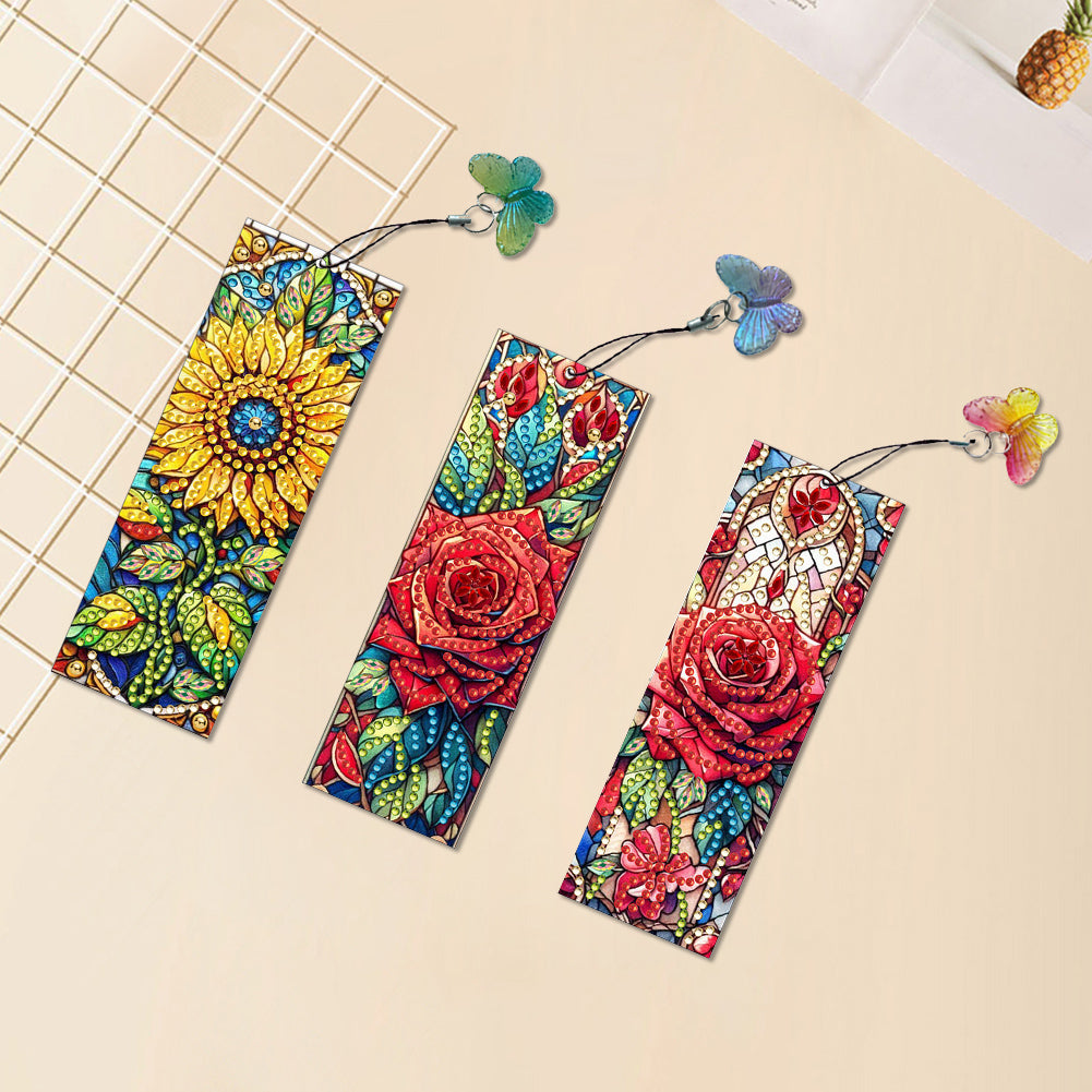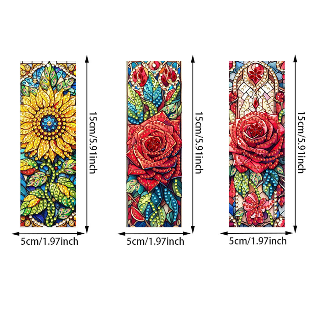 3Pcs Special Shape Flowers Diamond Painting Art Bookmark with Pendant for Books