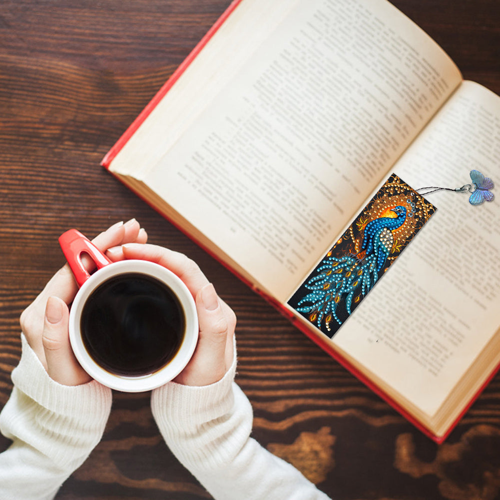 3Pcs Special Shape Peacock Diamond Painting Art Bookmark with Pendant for Books