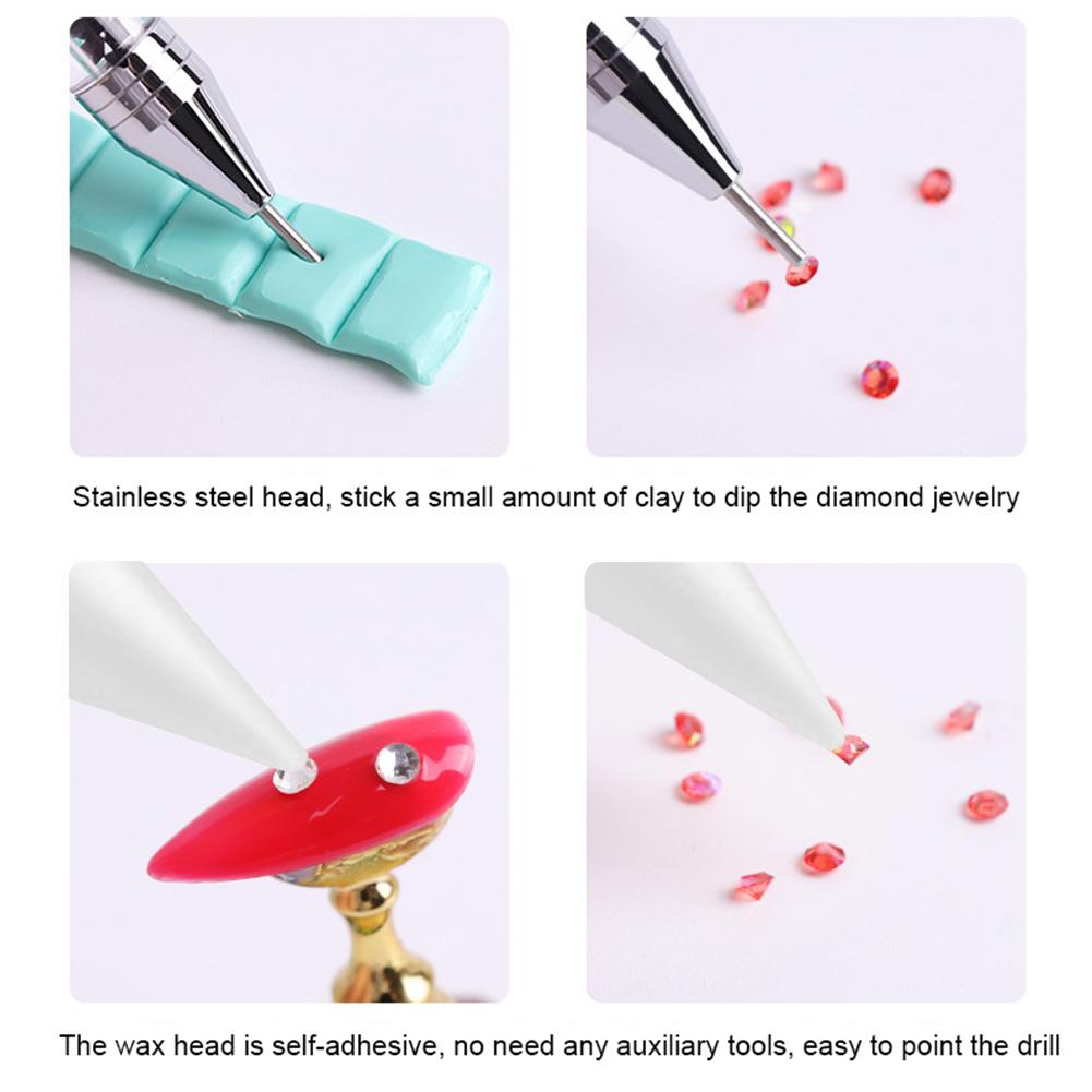 Dual Heads Acrylic Dotting Wax Pen Rhinestones Gem Picker Crystal Picking Nail Art Studs Dotter Diamond Painting DIY Point Drill Tools