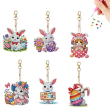 • Load image into Gallery viewer, 6Pcs Double Sided Special Shape Easter Bunny Diamond Painting Art Keyring