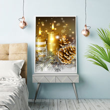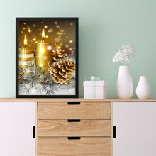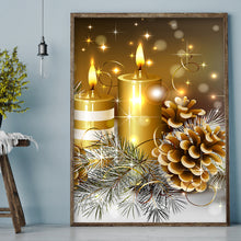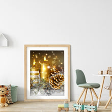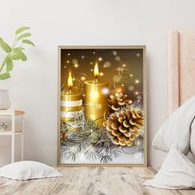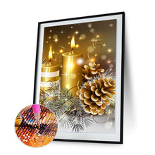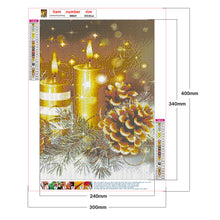 DIY 5D Mosaic Full Drill Round Shape Diamond Xmas Golden Candle Resin Painting Kit Rhinestone Drawing Home Art Craft Bedroom Decoration
