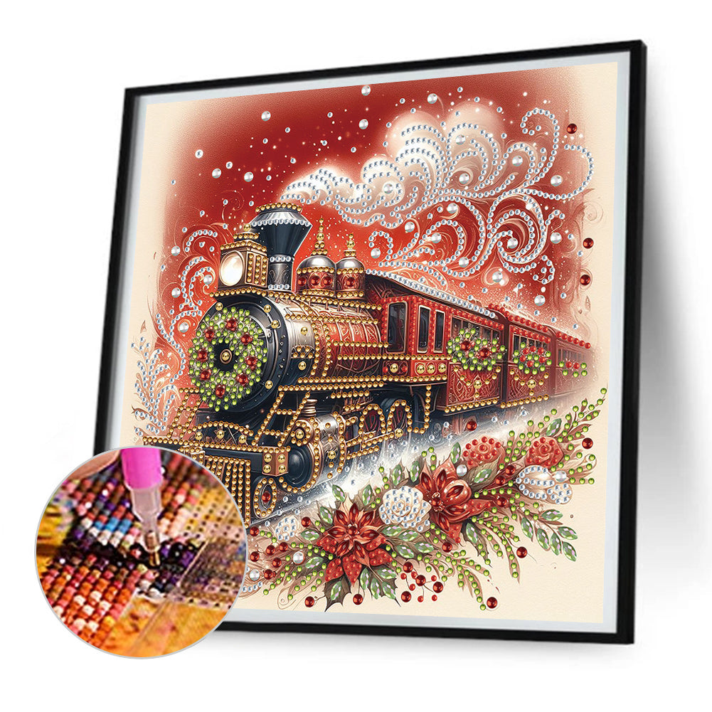 Diamond Painting - Partial Special Shaped - Red train (30*30CM)