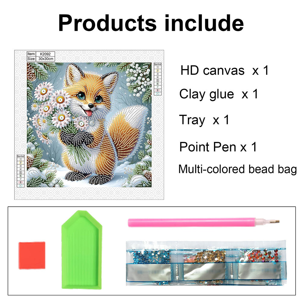 Diamond Painting - Partial Special Shaped - Winter fox (30*30CM)