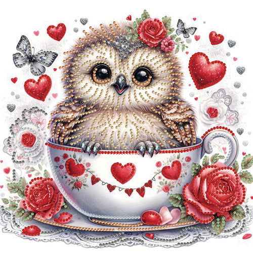 Diamond Painting - Partial Special Shaped - Love heart and little owl in coffee cup (30*30CM)