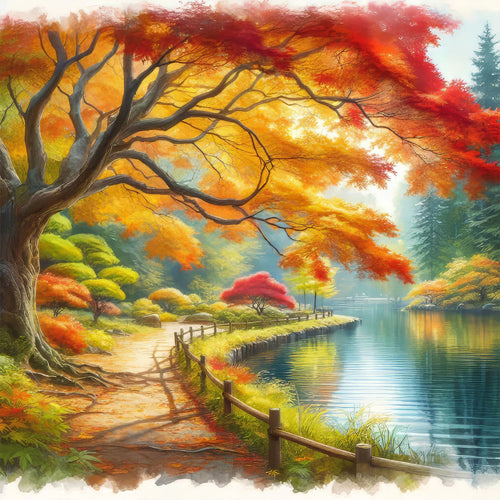 Diamond Painting - Full Round - Autumn leaves by the lake (40*40CM)