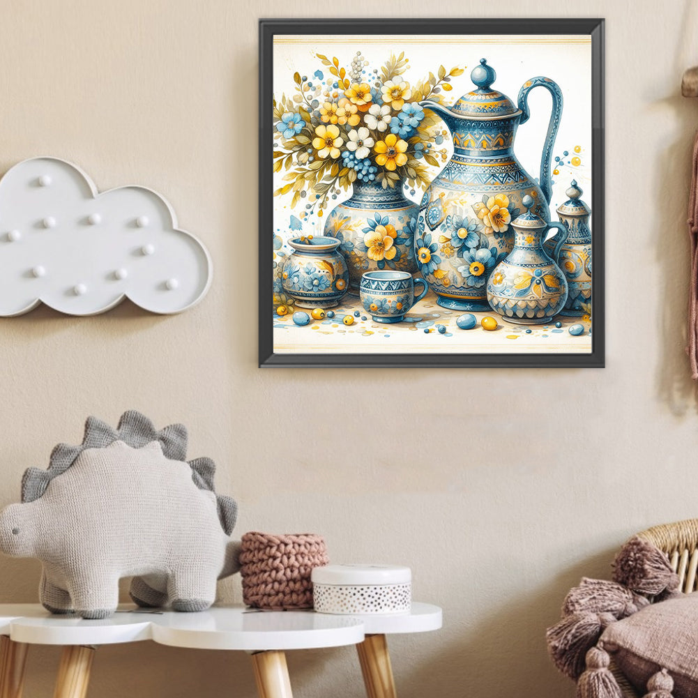 Diamond Painting - Full Round - Blue and yellow porcelain (40*40CM)