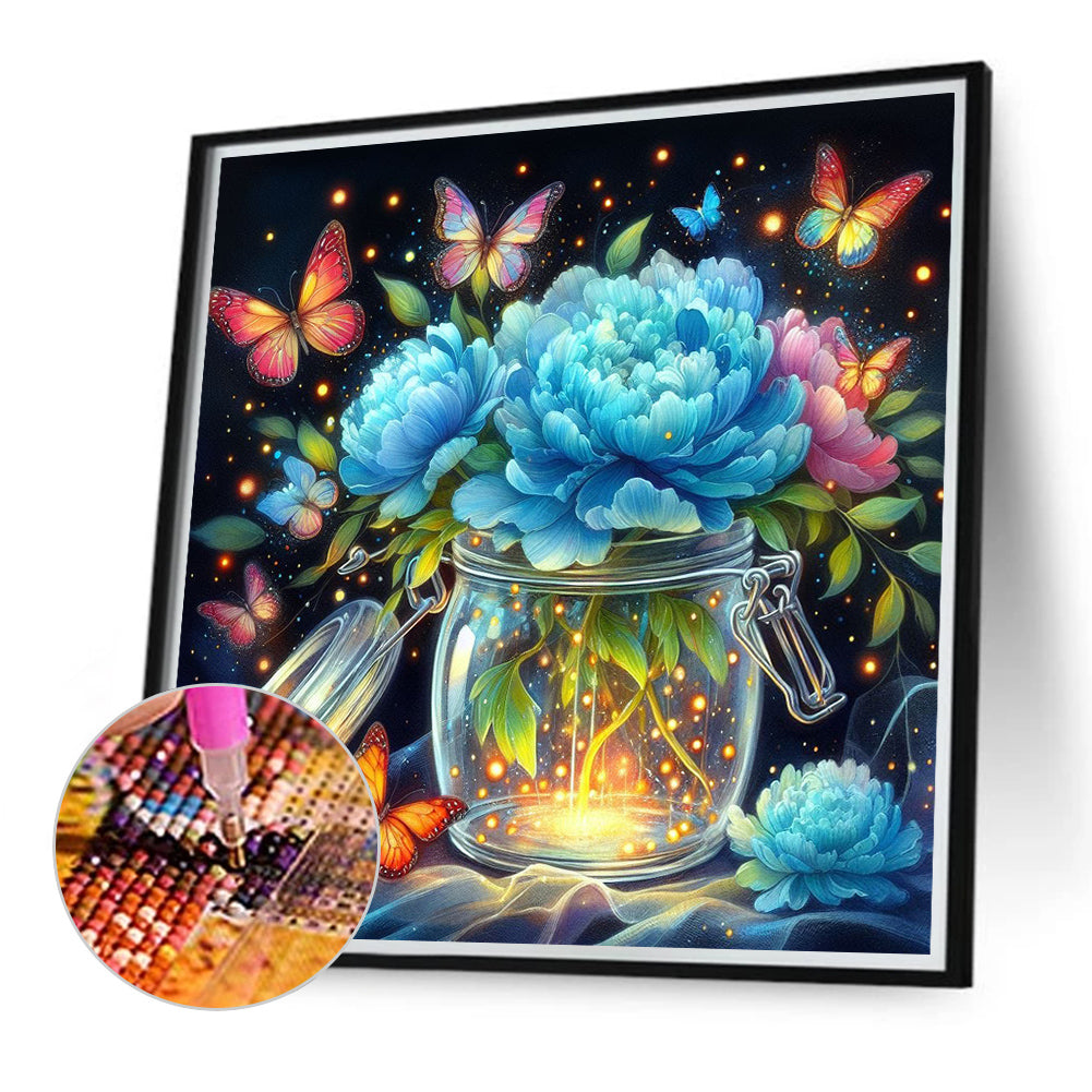 • Load image into Gallery viewer, Diamond Painting - Full Round - Blue flowers and butterflies (40*40CM)