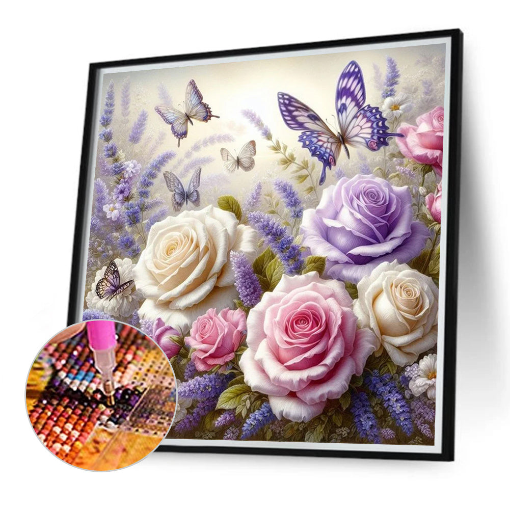 Diamond Painting - Full Round - Butterfly and Flowers (40*40CM)