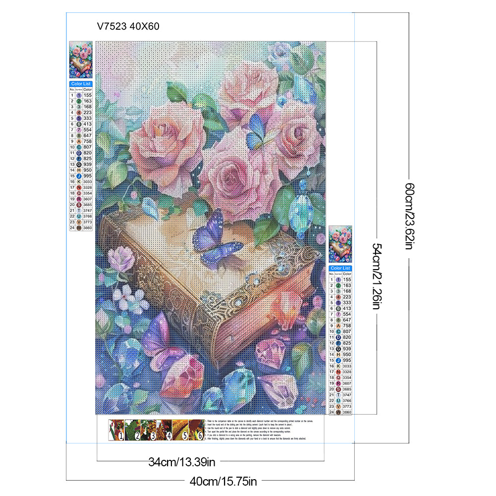 Diamond Painting - Full Round - Crystal flower book butterfly (40*60CM)