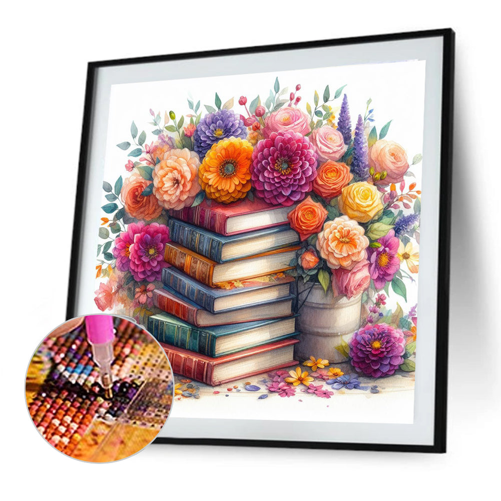Diamond Painting - Full Round - Flowers and books (40*40CM)